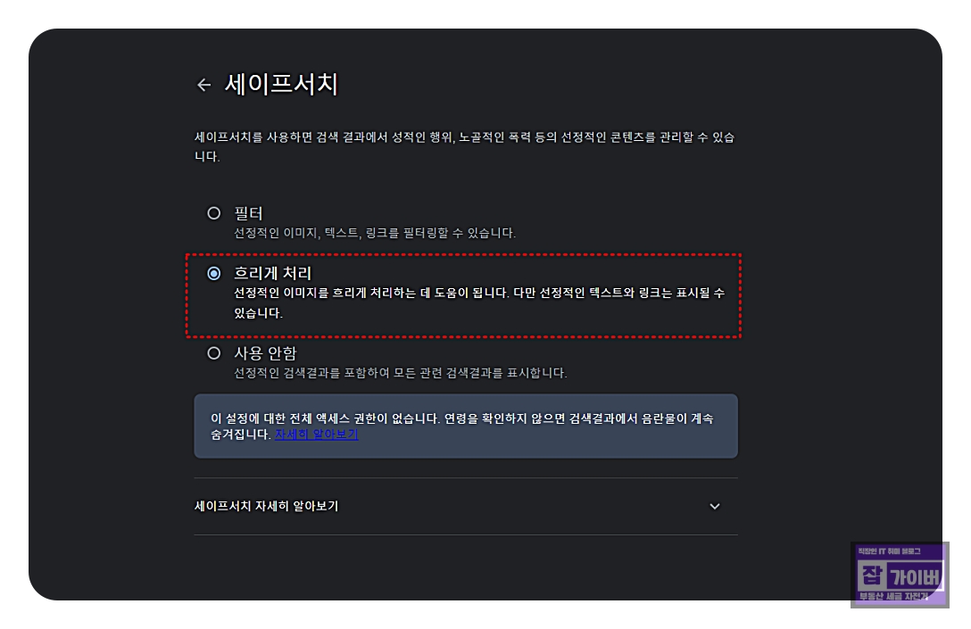 성인 콘텐츠와 선정적인 성인 전용 콘텐츠의 경계가 애매할 수 있으므로, 설정 변경 후에도 가끔씩 불편한 콘텐츠가 나올 수 있습니다. 이 경우, 추가 조정이 필요할 수 있으며 구글검색등에서도 세이프서치 기능을 통해 자녀검색 제한하도록 하는것을 추천합니다.