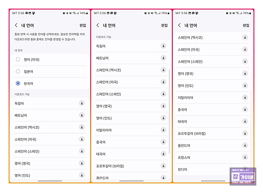 갤럭시s23 울트라 전화통화 중 AI 자동번역 영어 일본어 설정방법