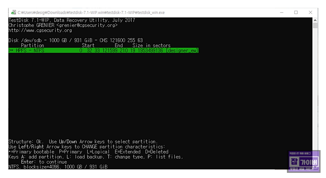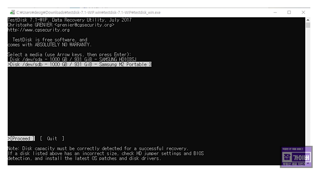 TESTDISK 명령어 손상된 파티션 USB 외장하드 인식안됨 복구방법