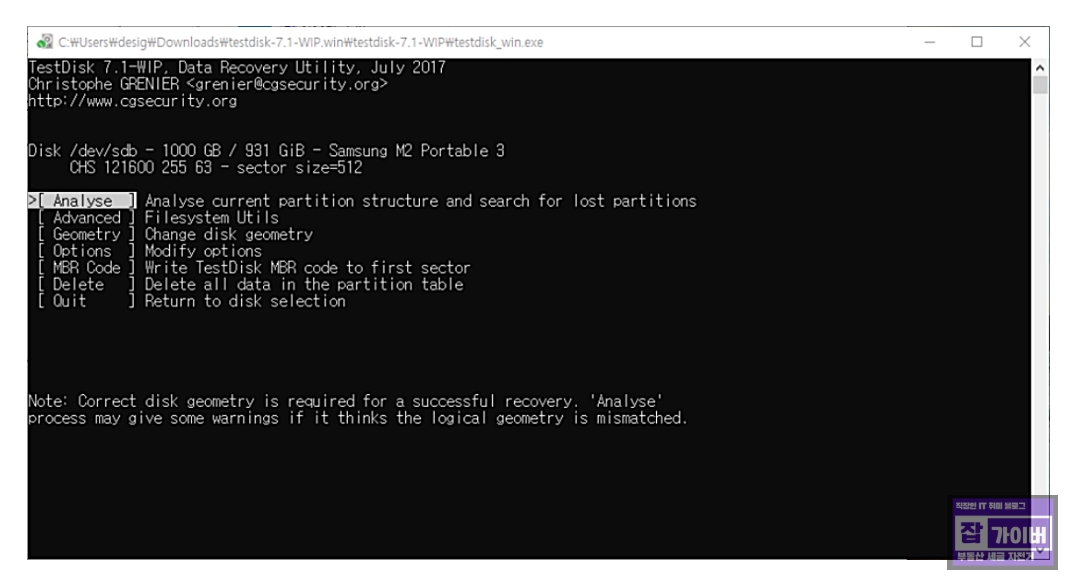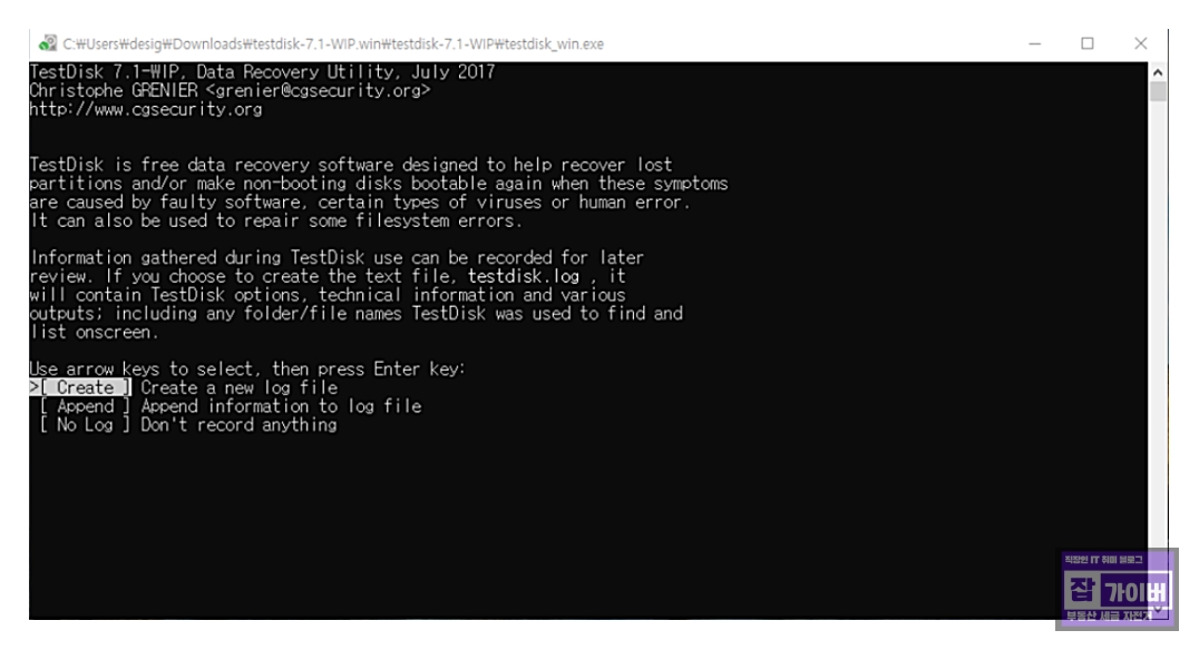 TestDisk는 공식홈페이지 및 위 첨부파일을 다운로드 받아 실행하면 되고 별도의 설치는 필요없습니다.