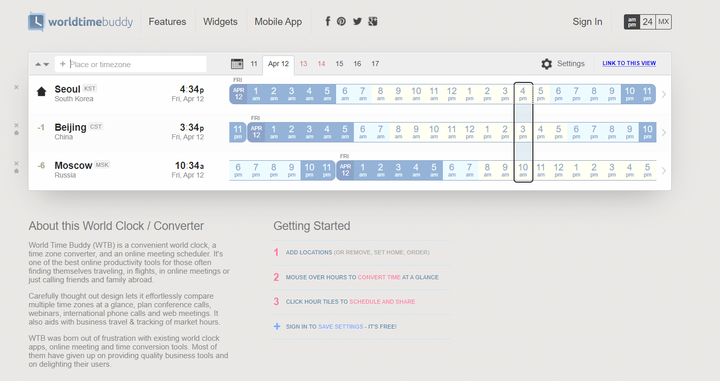 About this World Clock / Converter World Time Buddy (WTB) is a convenient world clock, a time zone converter, and an online meeting scheduler. It's one of the best online productivity tools for those often finding themselves traveling, in flights, in onlin