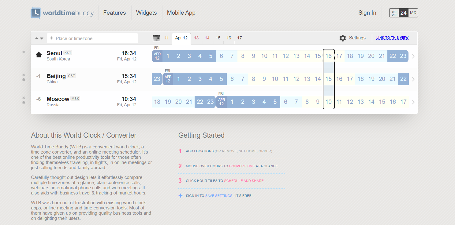 About this World Clock / Converter World Time Buddy (WTB) is a convenient world clock, a time zone converter, and an online meeting scheduler. It's one of the best online productivity tools for those often finding themselves traveling, in flights, in onlin