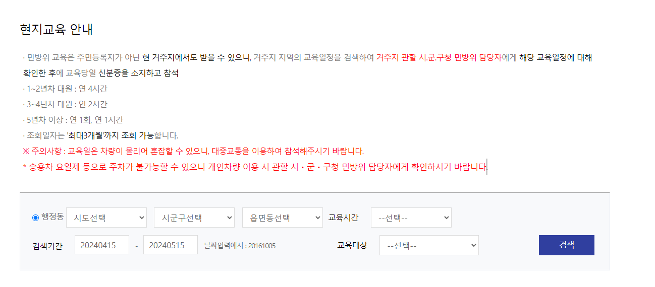- 승용차 요일제 등으로 주차가 어려울 수 있으니, 개인차량 이용 시 민방위 담당자에게 주차 가능 여부를 확인해 주세요.