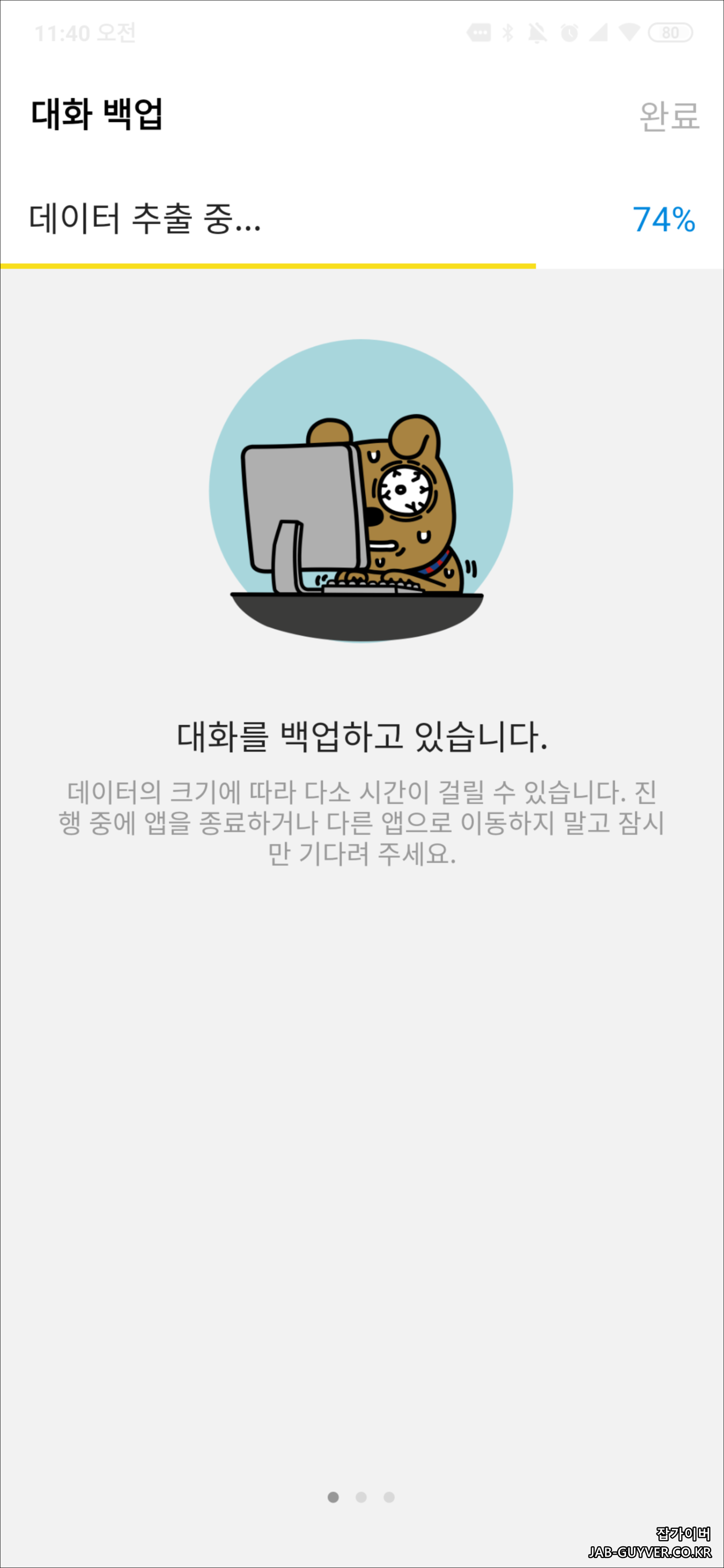 그럼 카카오톡 채팅 대화내용이 자동적으로 대화가 백업이 진행됩니다.