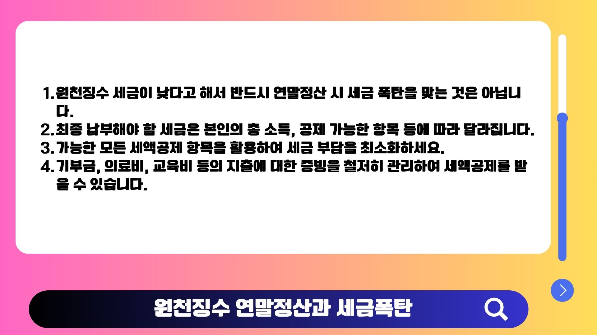 원천징수 세금이 낮다고 해서 반드시 연말정산 시 세금 폭탄을 맞는 것은 아닙니다.