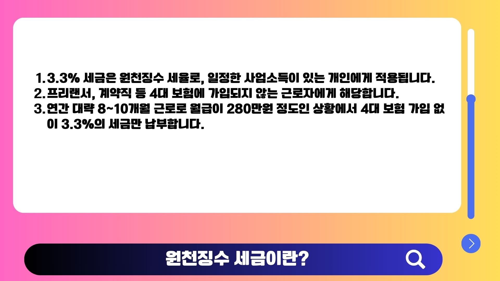 먼저, 3.3% 세금은 원천징수 세율로, 일정한 사업소득이 있는 개인에게 적용되는 세금입니다.