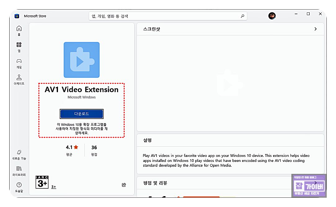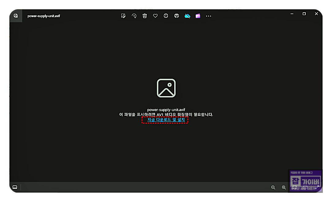 그러나 이 포맷을 처음 열 경우, AV1 비디오 확장 프로그램을 마이크로소프트 스토어에서 다운로드 및 설치해야 합니다.