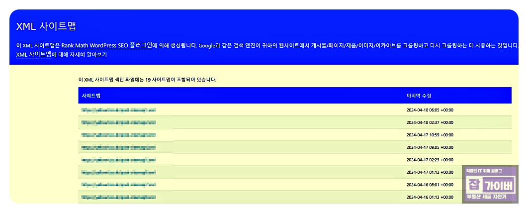 Rank Math SEO 플러그인의 사이트맵 설정을 확인합니다.