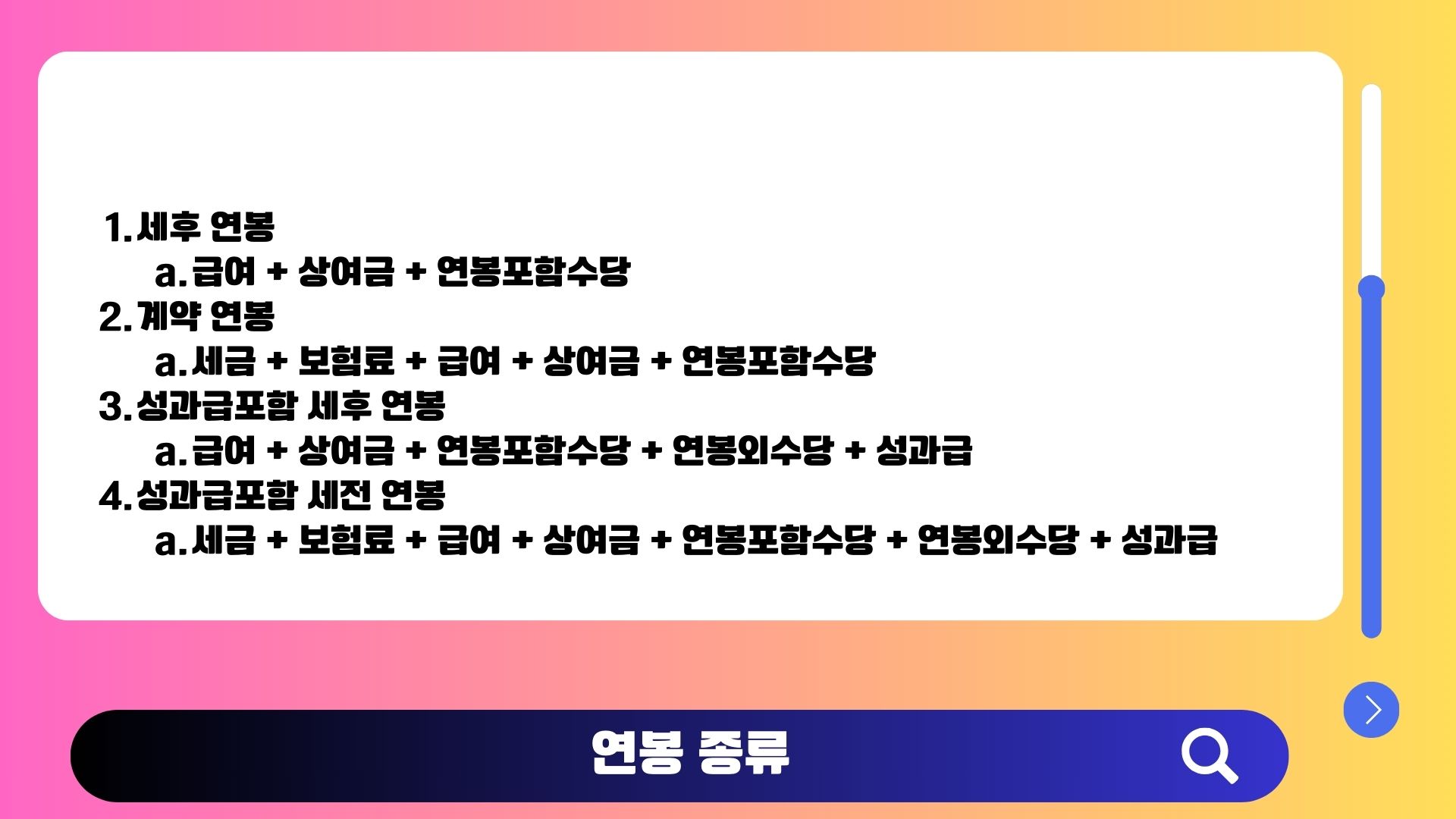 • 상여금: 연봉에 포함되는 추가급여로, 일반적으로 명절이나 특정 시기에 지급됨.