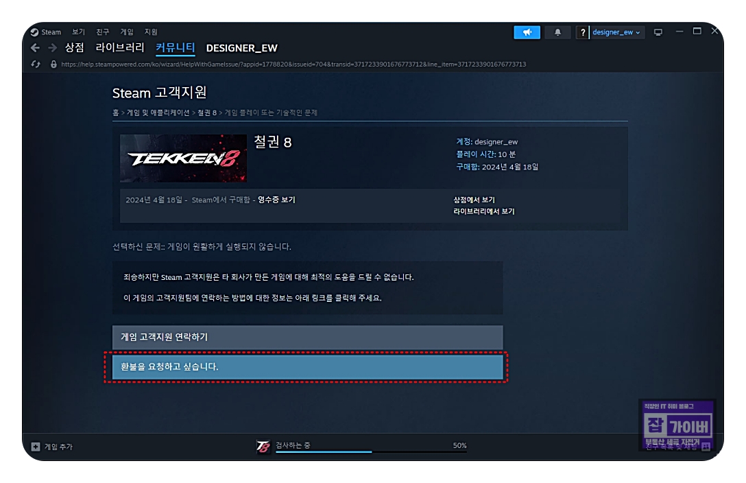 저는 이 방법으로도 철권8 실행되지 않아 결국 환불조치를 취했습니다.