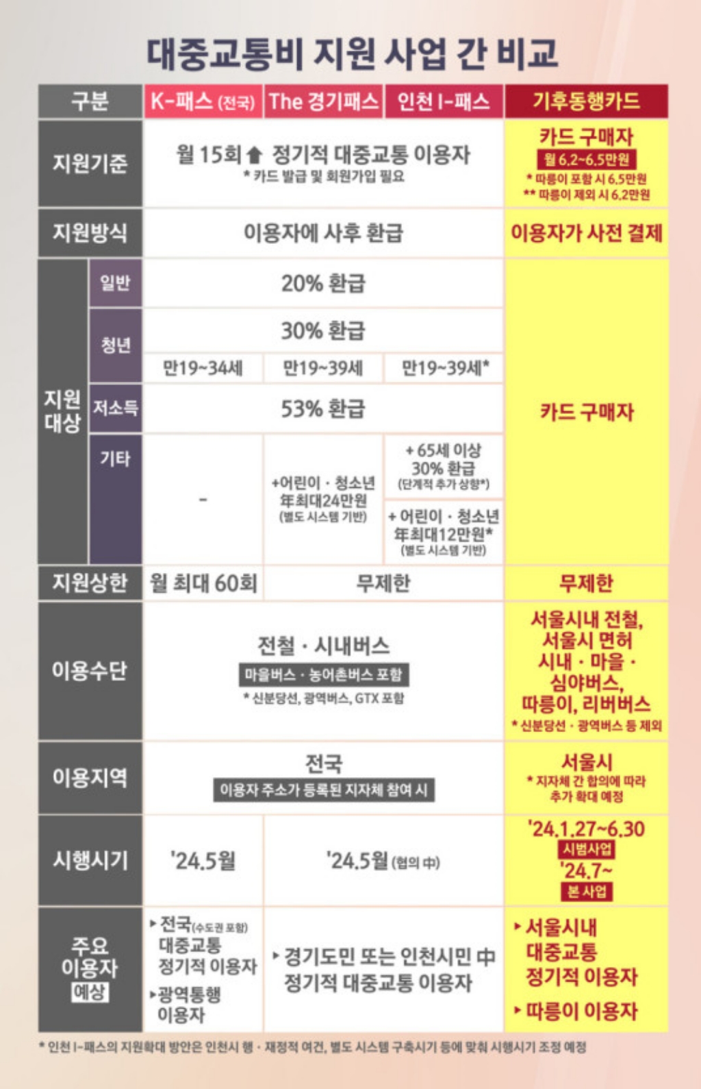 K-패스와 기존 알뜰교통카드의 차이점