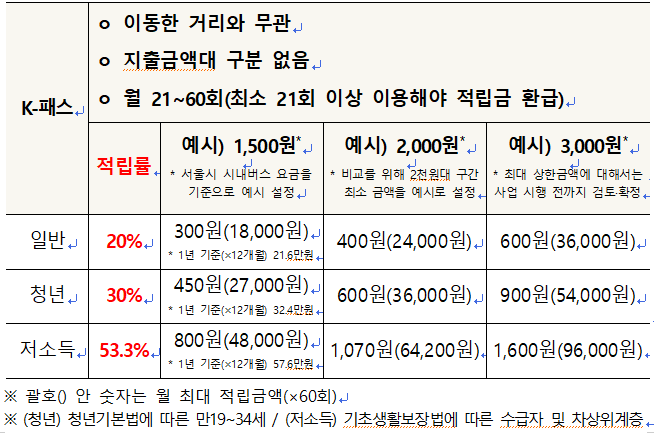 | K패스 | 월 15회 이상 / 최대 60회 중심 | 등록(카드번호+주소지 검증) |