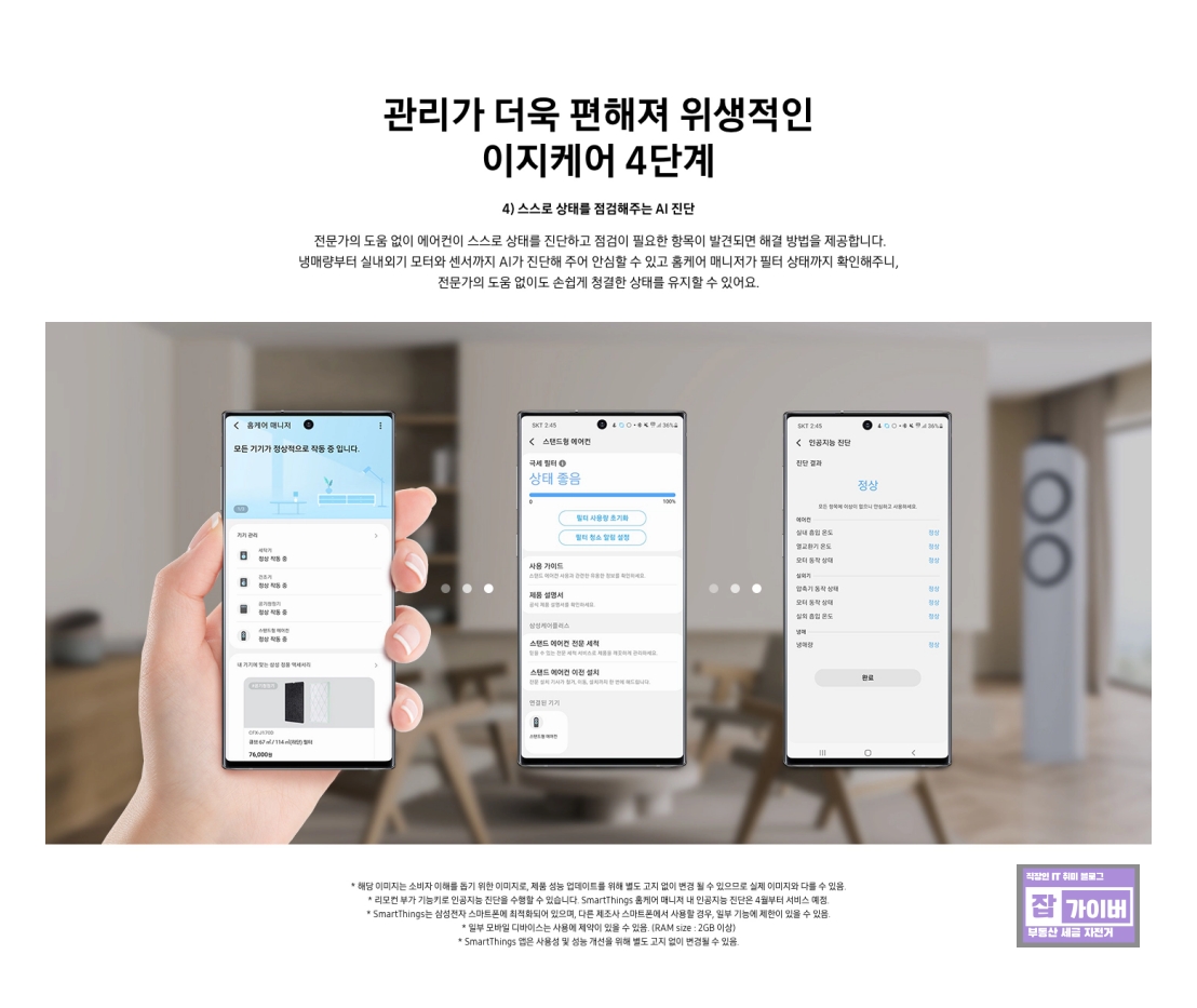 또한, 스마트싱스(SmartThings) 앱을 통해 ‘에어컨 인공지능(AI) 진단 Push 알림’도 발송되며 이를 통해 고객은 앱과 연동된 에어컨의 냉매 상태, 정상 동작 여부 등을 간편하고 정확하게 점검할 수 있습니다.