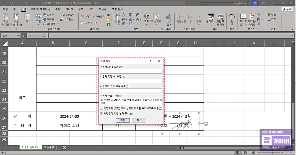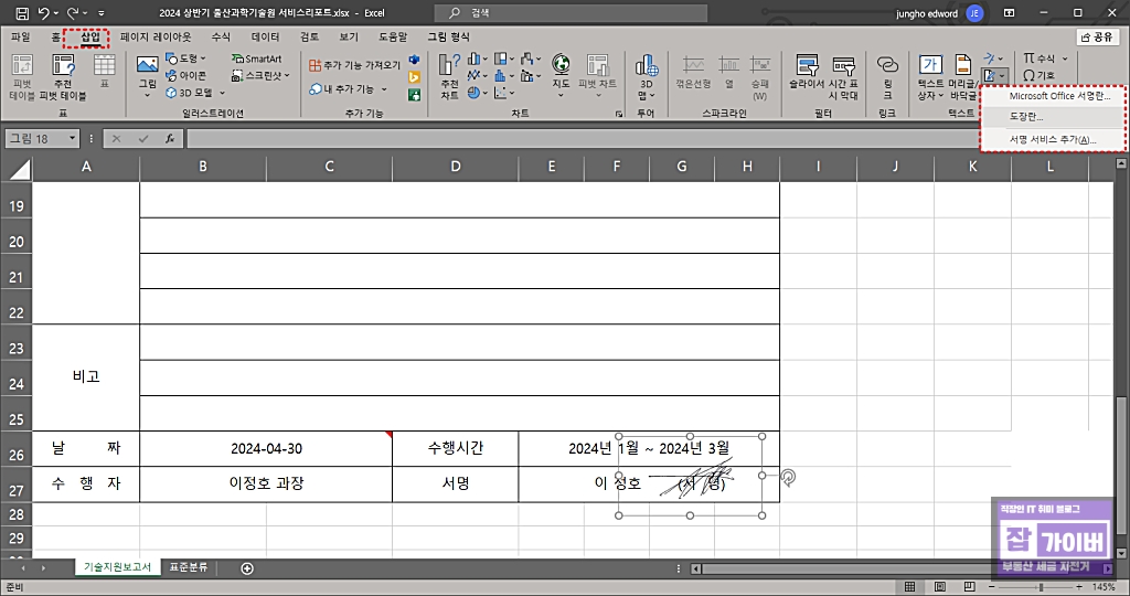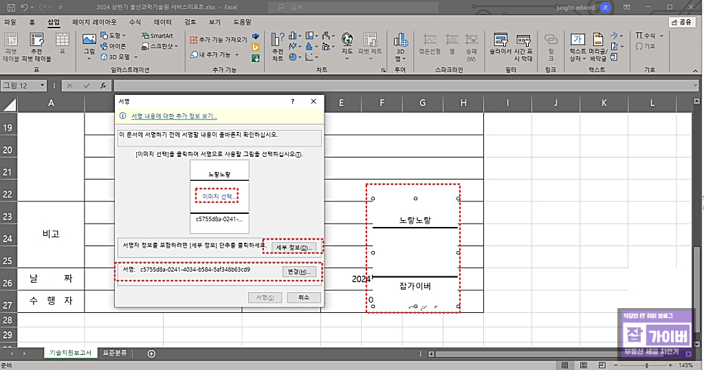 엑셀 디지털서명 싸인 그림 추가방법 - 전자서명