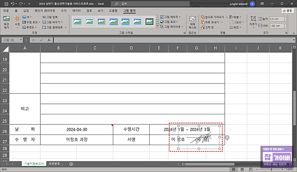 엑셀 싸인 이미지 추가