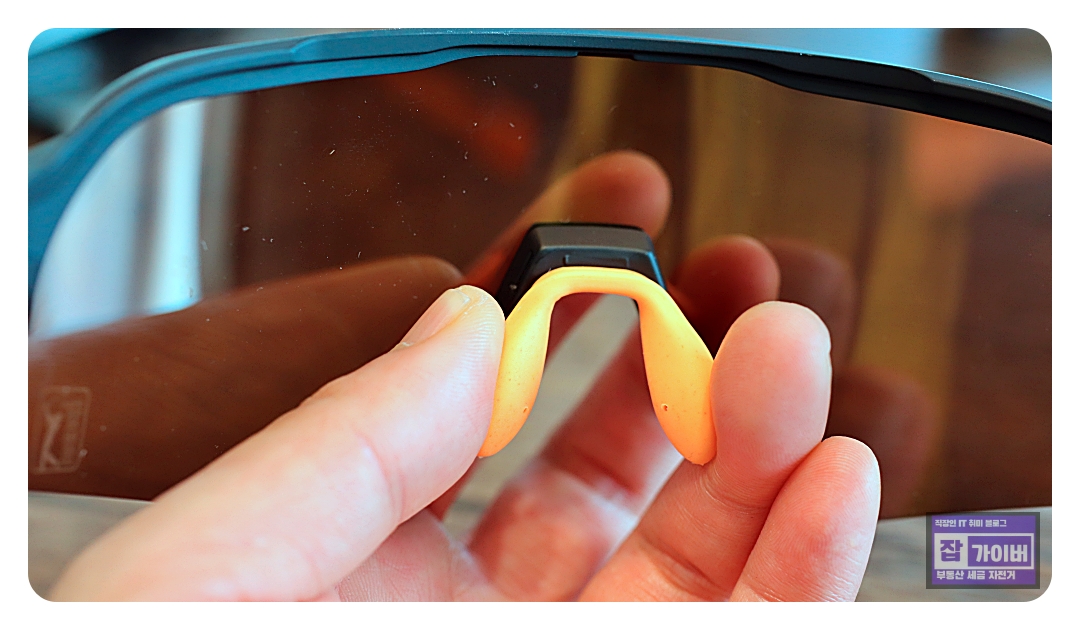 이는 한국인의 얼굴 형태에 맞춘 디자인으로, 해외 제품과는 차별화된 점이죠. 더불어, 귀받이 부분의 미끄럼 방지패드는 활동 중에도 선글라스가 움직이지 않도록 해주어, 안정적인 착용감을 제공합니다.