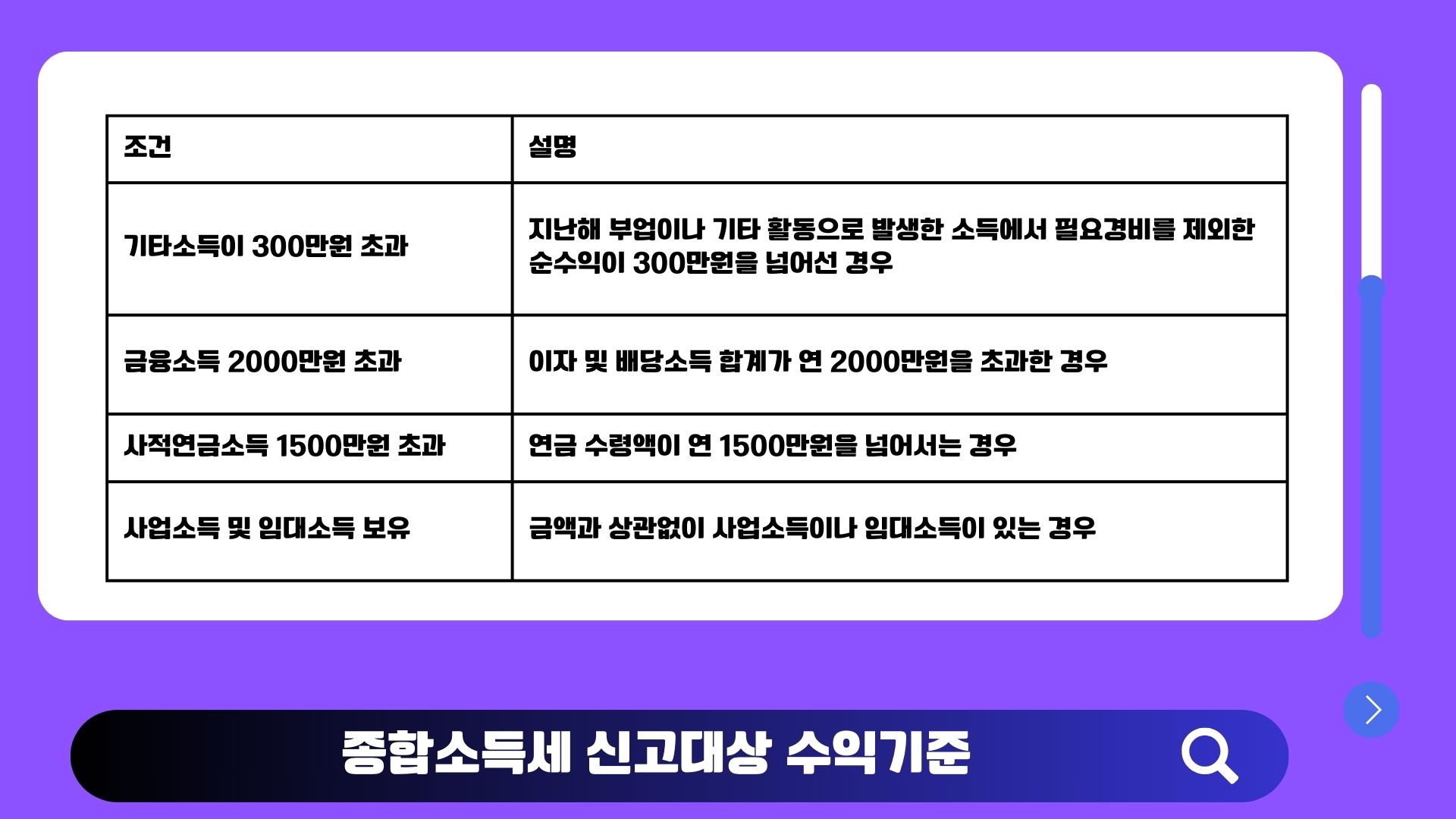 - 사업소득 및 임대소득 보유자: 금액과 상관없이 사업소득이나 임대소득이 있는 경우