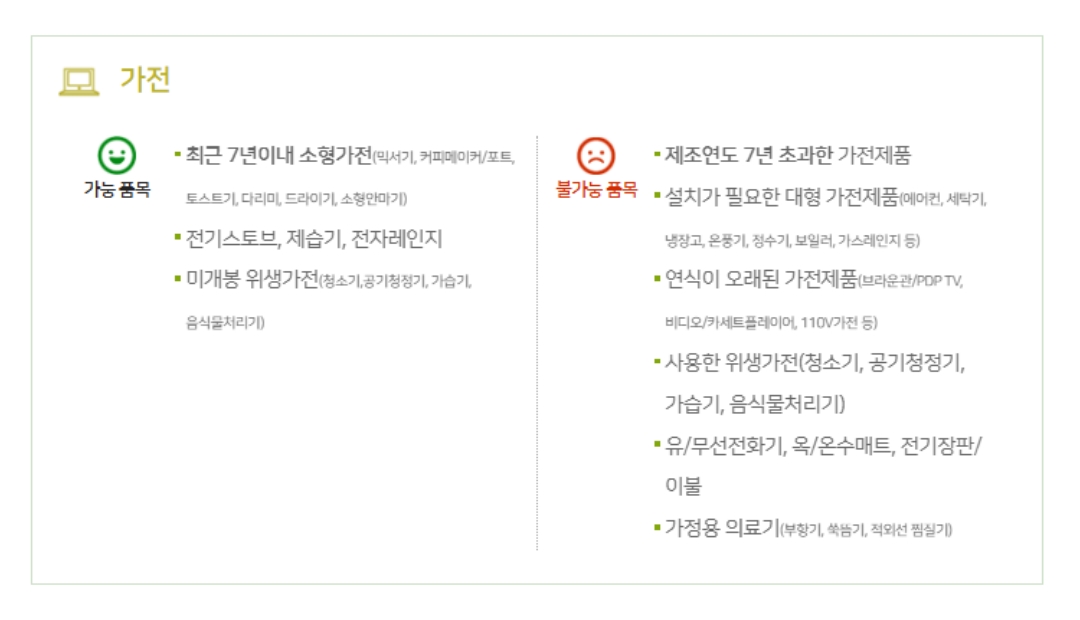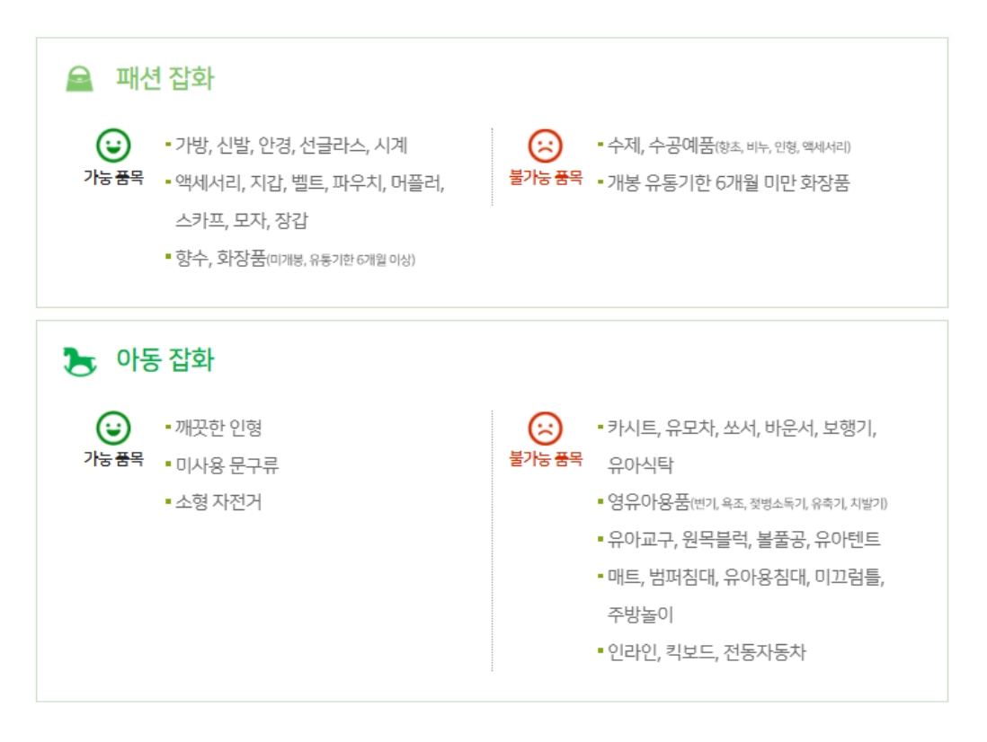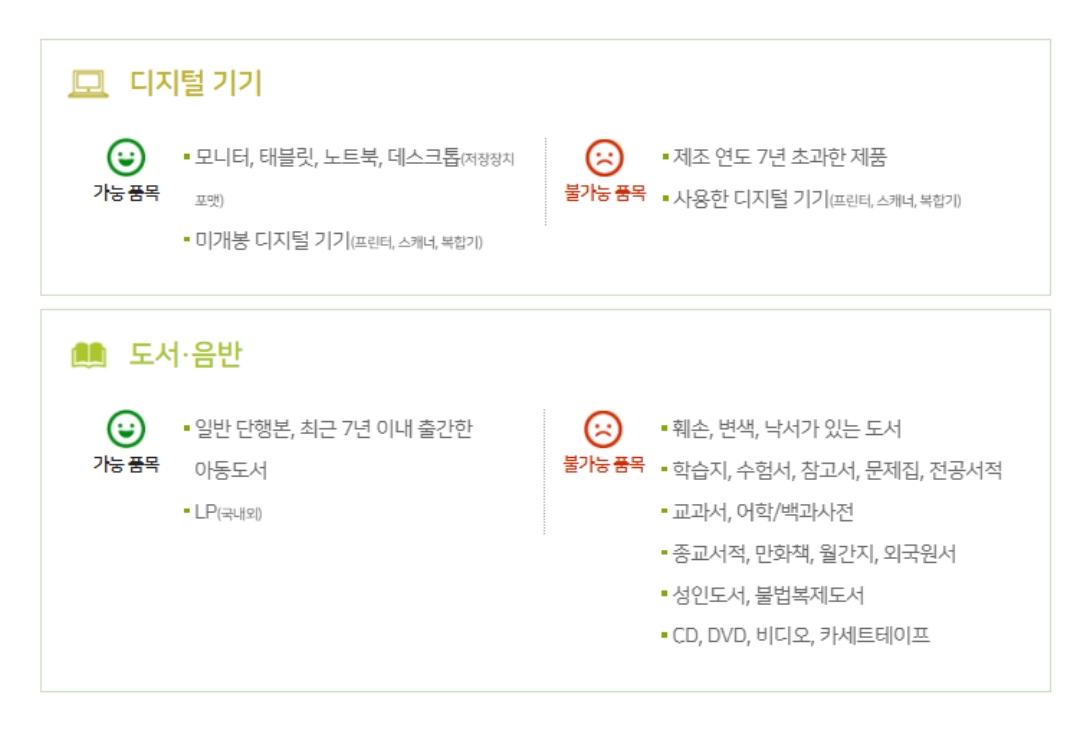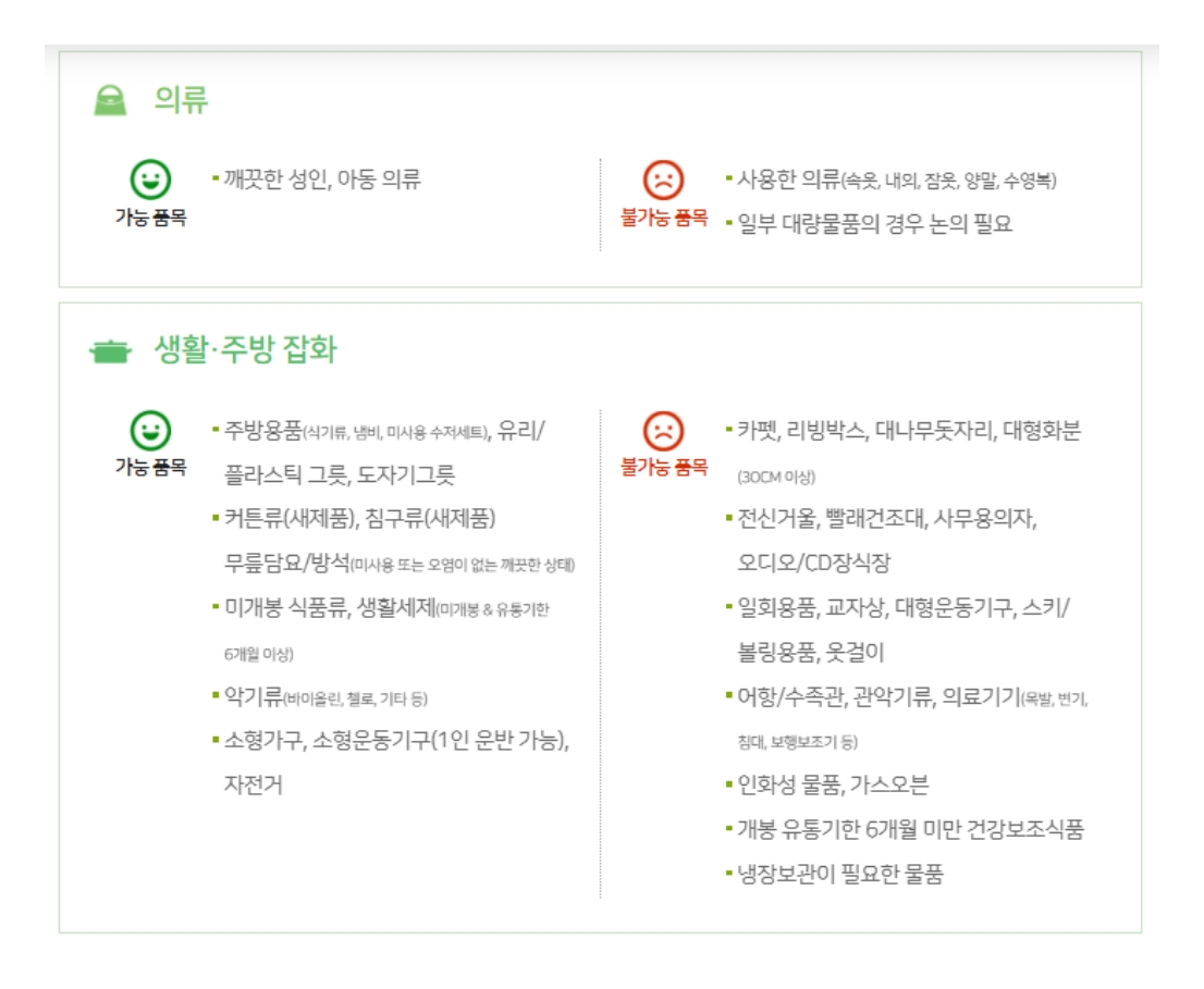 | 분류 | 기부 가능 품목 |