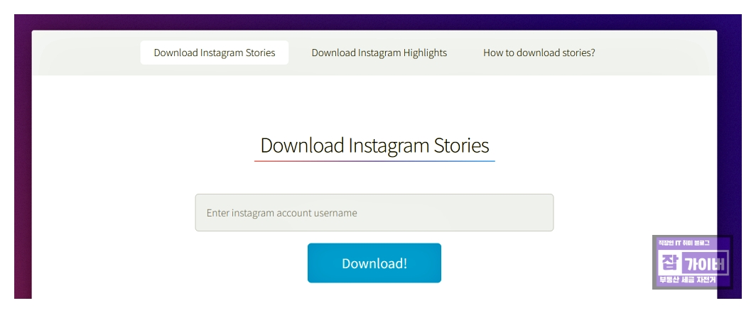 두 번째는 Storiesdown입니다. Picuki와 비슷한 기능을 제공하지만 로딩 속도가 다소 느릴 수 있습니다. 그러나 간단한 사용법과 사진, 스토리, 동영상 다운로드 기능을 제공합니다.