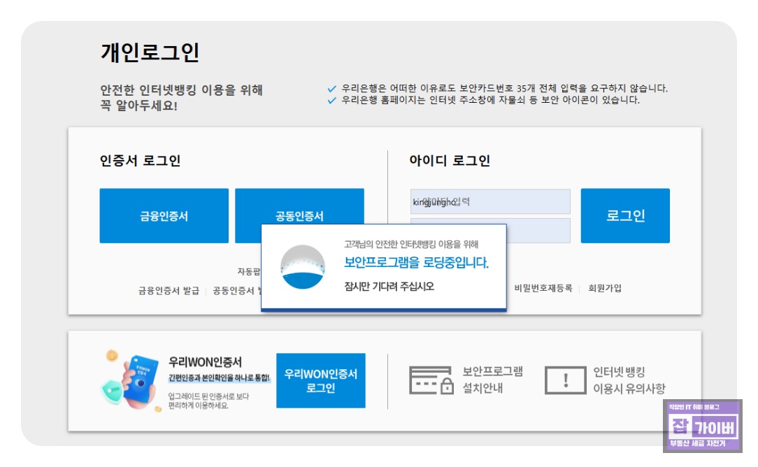 우리은행 보안프로그램 로딩