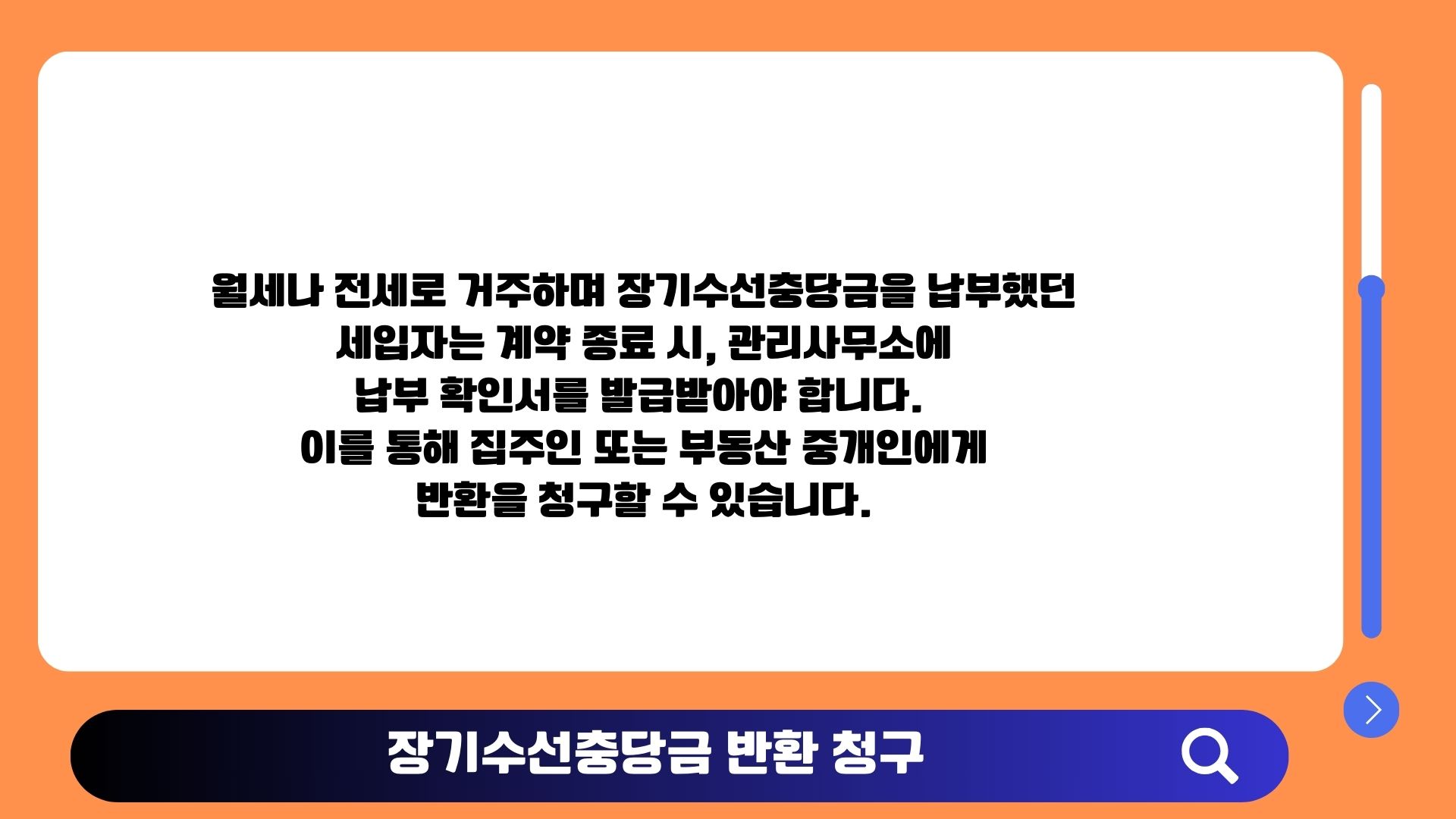 월세나 전세로 거주하며 장기수선충당금을 납부했던 세입자는 계약 종료 시, 관리사무소에 납부 확인서를 발급받아야 합니다.