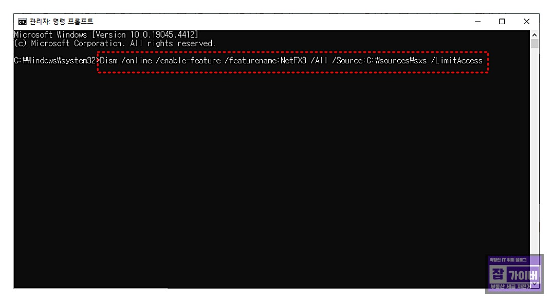 Dism /online /enable-feature /featurename:NetFX3 /All /Source:X:\sources\sxs /LimitAccess