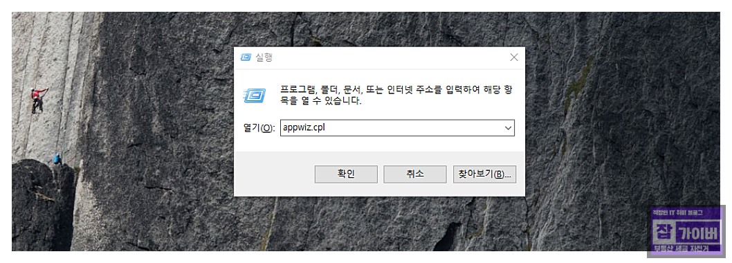 실행 창(Win 키 + R)에 'appwiz.cpl'을 입력하고 실행합니다.