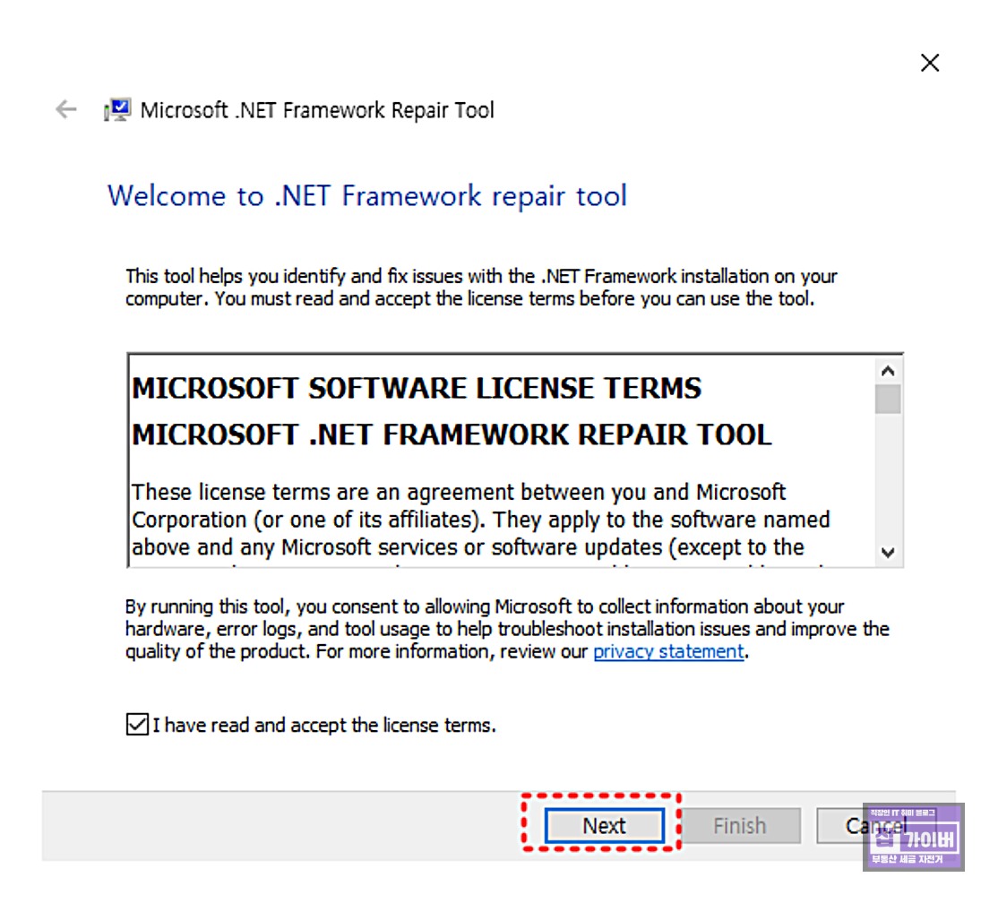 Microsoft 공식 웹사이트에서 .NET Framework 복구 도구를 다운로드합니다.