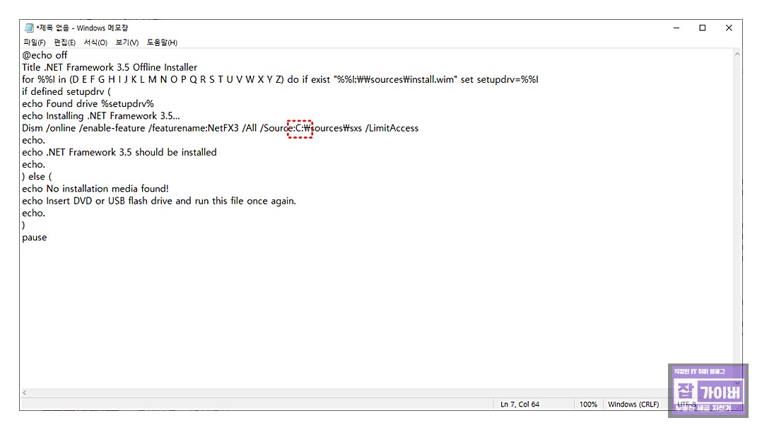 메모장을 실행 후 아래 코드를 복사하여 붙여넣기 합니다.