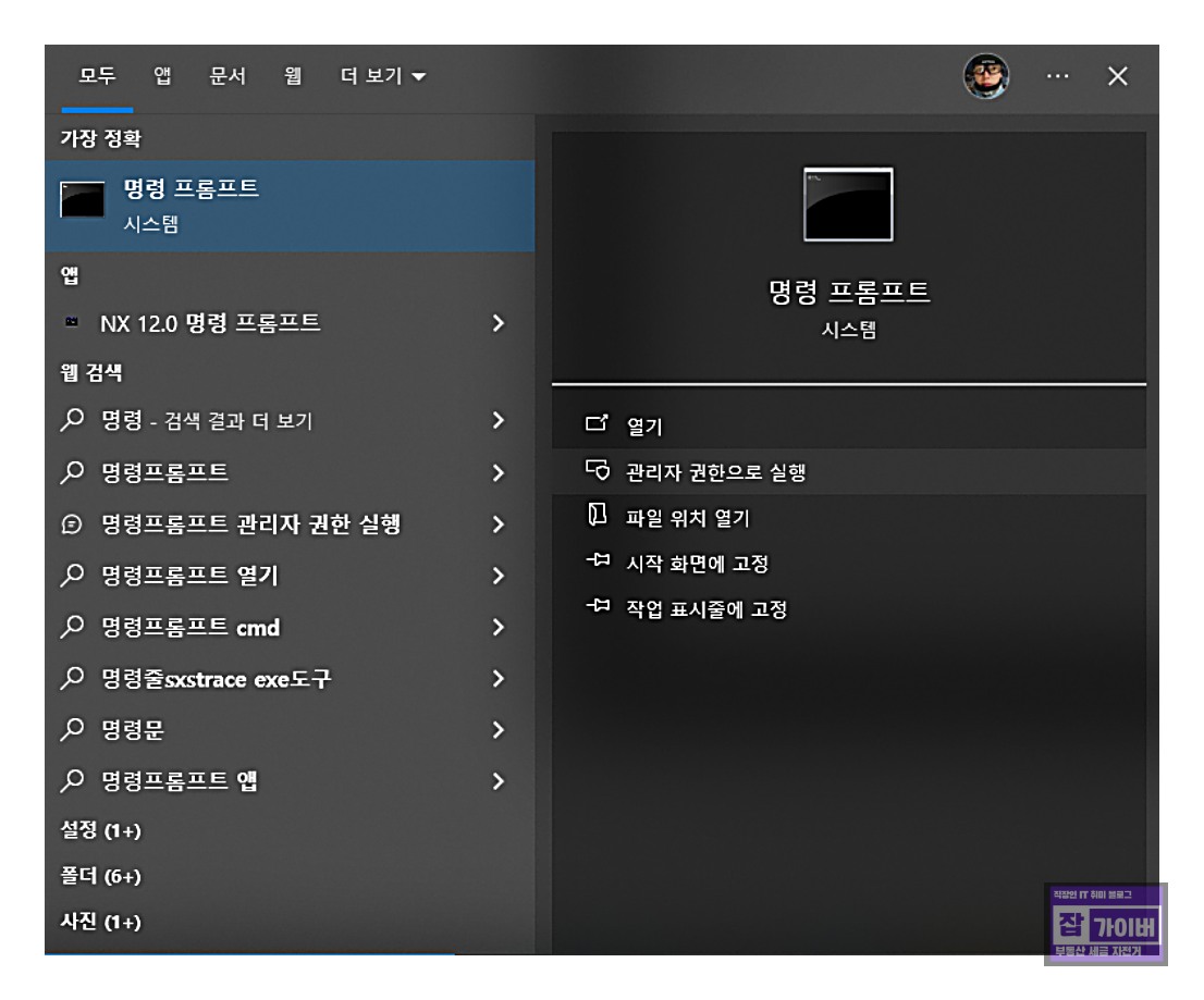 시작 메뉴에서 'CMD'를 검색하고 '관리자 권한으로 실행'합니다.
