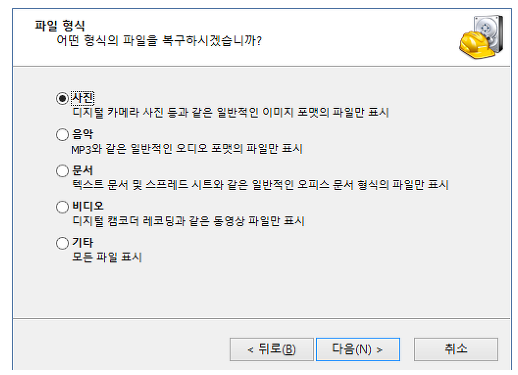 - 프로그램을 실행한 후, 복구할 파일 형식으로 '그래픽'을 선택합니다.