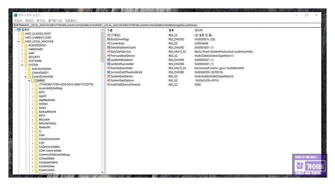 레지스트리 편집기를 이용해 USB 디스크의 쓰기 금지 설정을 해제할 수 있습니다