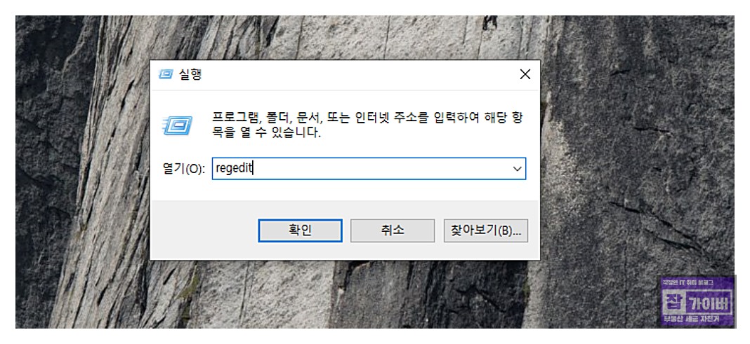 Windows 검색 또는 실행 창에 'regedit'를 입력하여 레지스트리 편집기를 엽니다.