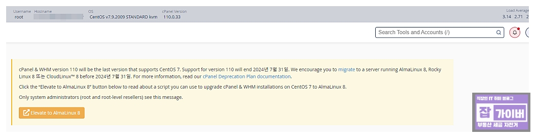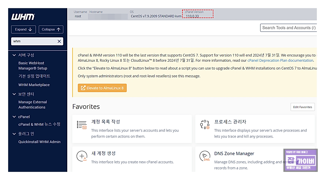 cPanel & WHM 버전 110을 AlmaLinux 8로 업그레이드하기