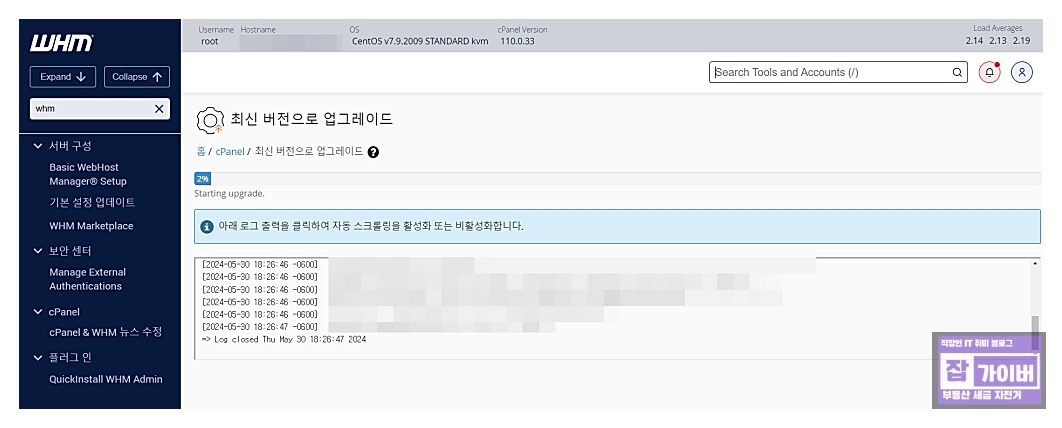 블루호스트 VPS WHM & C-Panel 업데이트 설치
