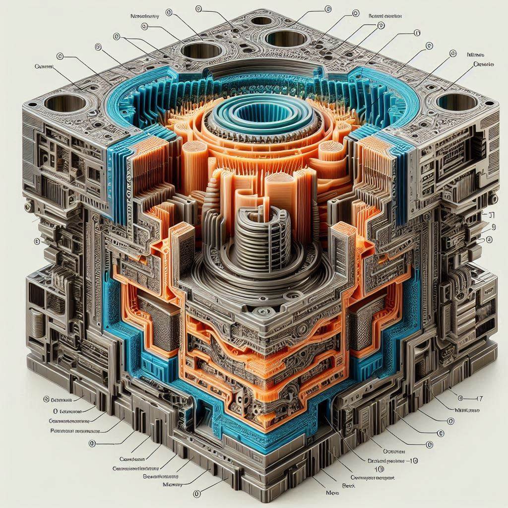첫 번째로, 코어(Core)는 금형의 내부 부분으로, 제품의 내측 형상을 결정하는 역할을 합니다. 주로 금속으로 제작되며, 사출 금형에서 플라스틱이 채워지는 부분입니다.