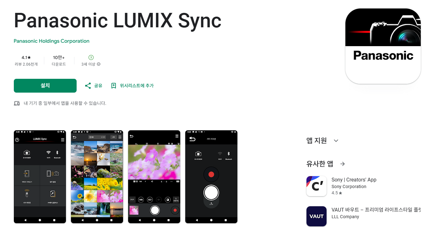 - 안드로이드: Play 스토어 → LUMIX Sync