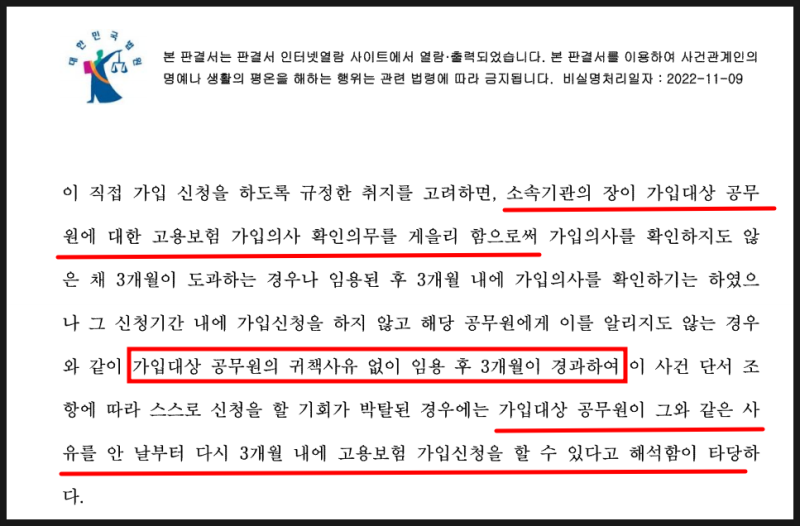 이 경우 최초 임용된 날로부터 3개월 이내에 고용보험 가입 신청을 해야 합니다.