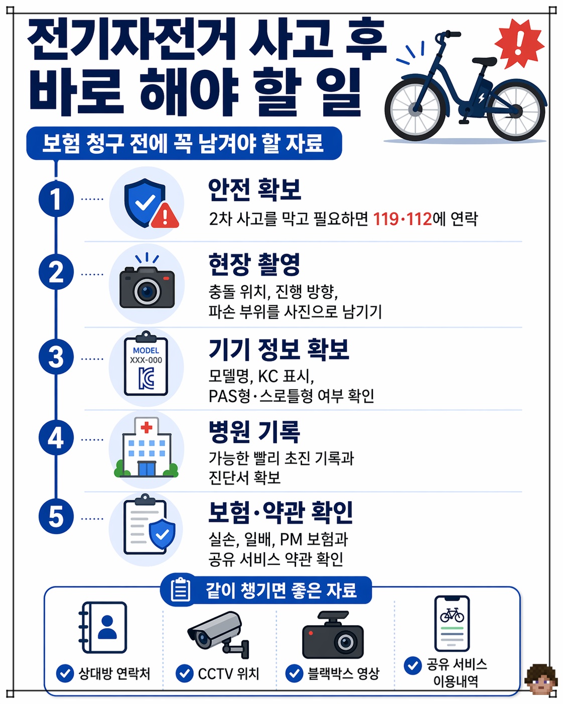 전기자전거 사고에서 제일 중요한 건 사고 난 뒤 보험사에 바로 “전기자전거 사고니까 안 되겠지” 또는 “자전거니까 되겠지”라고 단정하지 않는 것입니다.