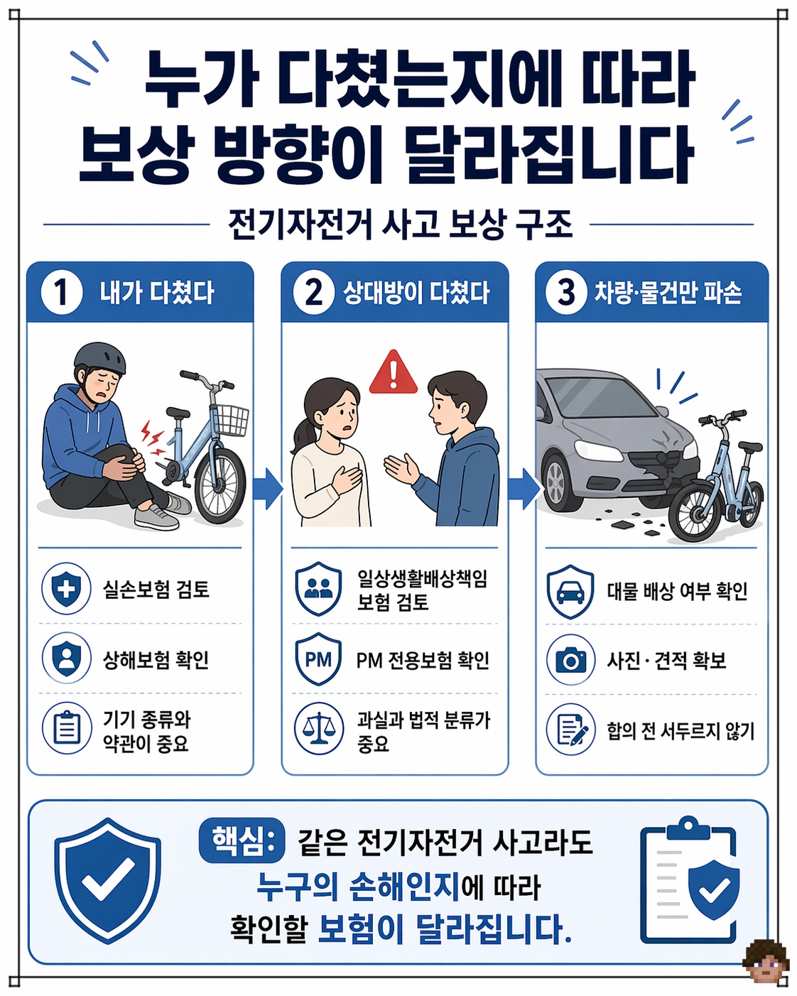 그래서 전기자전거 사고에서는 내가 피해자일 때보다 내가 가해자일 때 먼저 떠올리는 보험입니다.