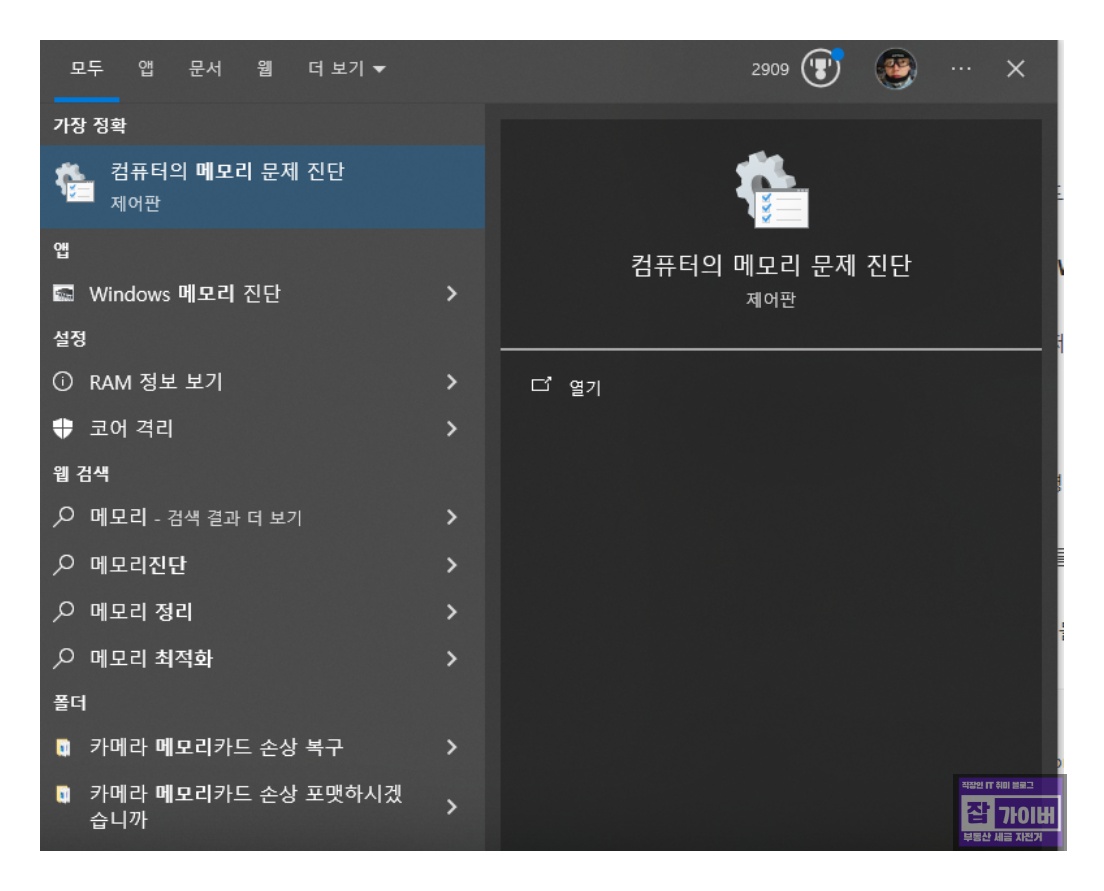먼저, Windows에서 제공하는 메모리 진단 도구를 사용하여 메모리 상태를 확인합니다.