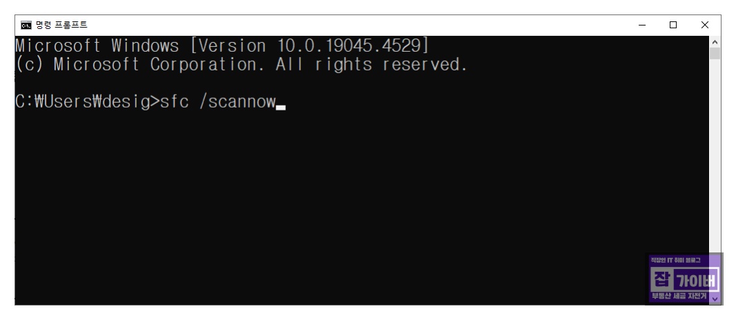 오류가 발생한 부분을 복구하기 위해 다음 명령어를 실행합니다.