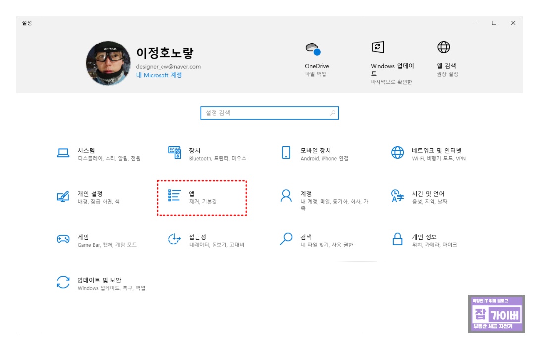윈도우키 + i 키를 눌러 Windows 설정 창을 엽니다.