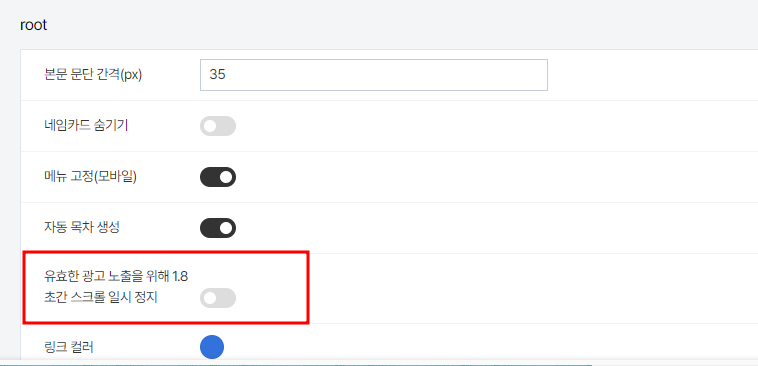 처음엔 스킨에 맞게 자동광고가 나오는데 시간이 걸리나 싶었지만 이건 아닌거 같고 확인해보니 광고 수익을 높이기 위해 일부 티스토리 스킨 중에서 페이지 로딩 후 1~2초정도 마우스 스크롤이 되지 않도록 설정하는것들이 있습니다.