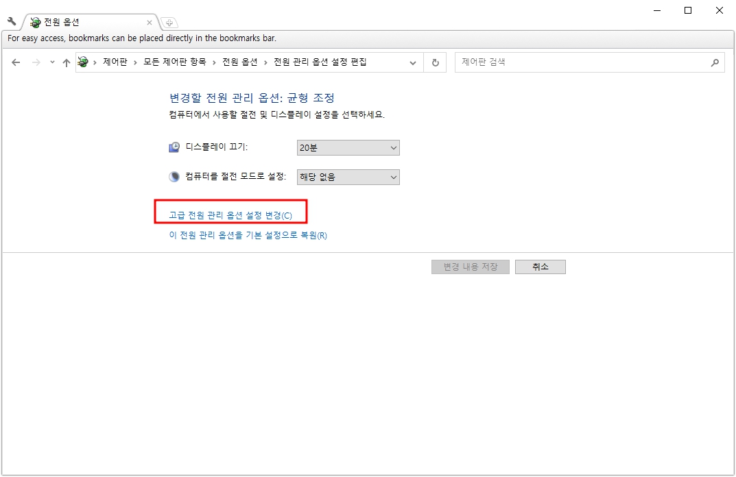 - "추가 전원 설정"을 클릭하고, "균형 조정" 옵션을 선택합니다. 이를 통해 시스템 자원 소모를 최소화하여 발열을 줄일 수 있습니다.