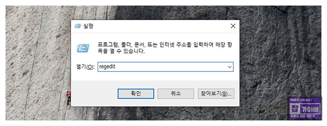 윈도우 키 + R 키를 동시에 눌러 실행 상자를 엽니다. 그런 다음 "regedit"를 입력하고 Enter 키를 눌러 레지스트리 편집기를 엽니다.