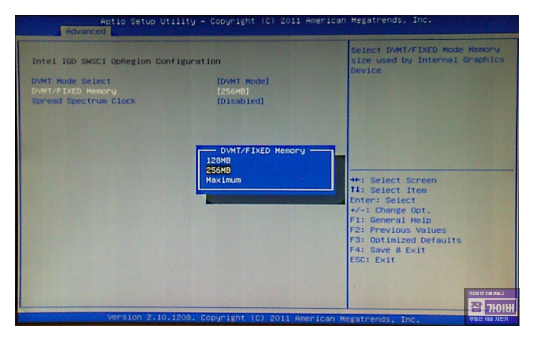 VRAM 설정은 BIOS 내부에서 VGA 메모리 설정 값을 조정하는 과정에서 문제가 되는 경우가 많습니다.