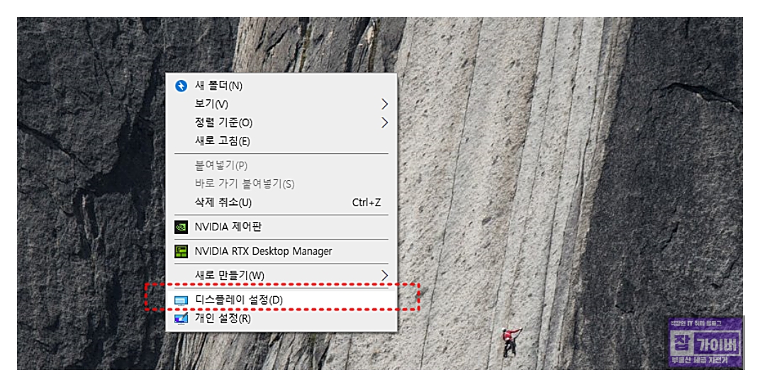 Windows를 부팅하여 바탕화면에서 오른쪽 마우스 버튼을 클릭하여 "디스플레이 설정"을 선택합니다.