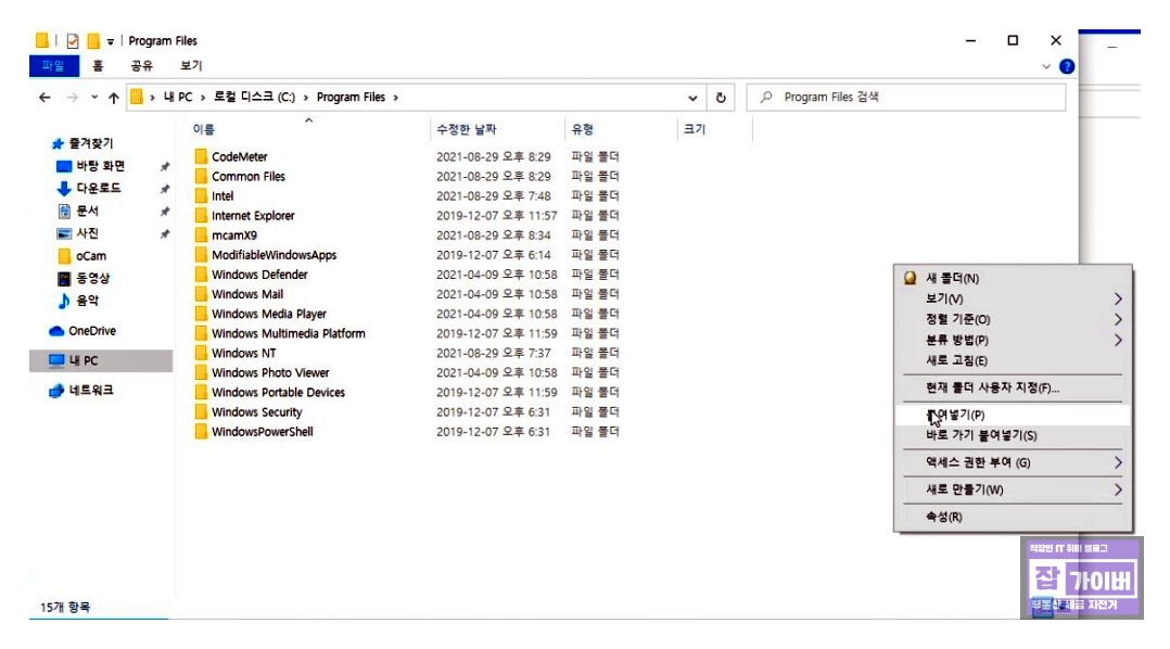 그 다음으로 한글 패치를 진행합니다. 한글 폴더 내 mcamX9 폴더를 복사한 후 C 드라이브의 Program Files 폴더 내에 붙여넣기 합니다.