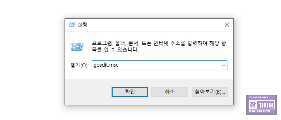 자동 업데이트를 영구적으로 비활성화하려면, 먼저 'gpedit.msc'를 실행하여 그룹 정책 편집기에 들어갑니다.
